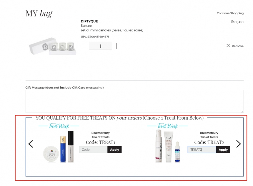 Bluemercury 现有 海蓝之谜/蒂普迪克等全场护肤美妆香氛 满$75任选3件豪华中样,共有5种组合可以选择,包括Fresh、YSL、德美乐嘉等多个大牌的明星中样,需要使用优惠码:TREAT1 或者TREAT2 或者TREAT3 或者TREAT4或者TREAT5 ,美国境内免邮,优惠截止日期到8月13日12:00。立即购买>>