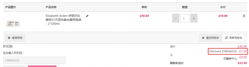 Unineed Limited CN 现有Elizabeth Arden 雅顿 至尊面霜 2*100ml 套装,原价£90,现特价£42.49(约376元),需要使用优惠码:CNSALE15 ,实付满100镑,无需code 再赠送价值18镑妙巴黎口红2支;满200镑,除了送上面2款口红,再赠送:欧莱雅火山岩面膜和Olay玉兰油保湿精华,产品价值共计55镑!优惠随时可能失效,满£50即可免费直邮中国。立即购买>>