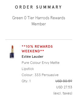需要免费注册 Harrods Reward 会员才能看到折扣价格,价格显示在购物车内。