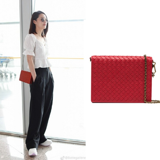 李沁街拍相似款 BOTTEGA VENETA Intrecciato 编织皮革包包