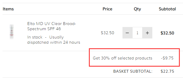 SkinCareRx 现有 ELTA MD 清爽** SPF46,原价$32.5,现特价$22.75(约157元),需要使用优惠码:SKIN30 ,优惠随时可能失效,满$49免美国境内运费。立即购买>>