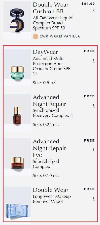 Estee Lauder 雅诗兰黛 美国官网 现有 Double Wear 持久气垫粉底,售价$42(约287元),全场满$50送正装 Double Wear 卸妆巾(45片,价值$22.5),需要使用55专享优惠码:55VDAY ,每个账户限使用一次,每满$25结账时可以自选1件小样,*多满$150送6件,有效期至北京时间 2018年08月20日16点,美国境内免邮。立即购买>>