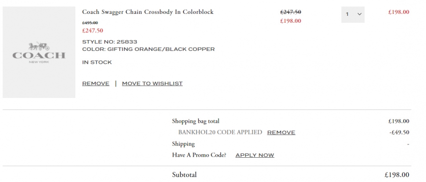 Coach 英国官网精选时尚包包等 低至5折 + 额外8折,需要使用优惠码:BANKHOL20 ,英国境内任意订单免运费。立即购买>>