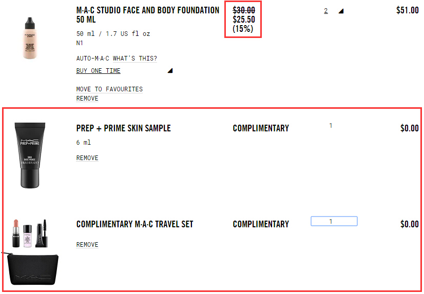 MAC 魅可 美国官网 现有小奶瓶定制双用粉底液 50ml,原价$30,现特价$25.5(约175元),需要加入 Select 会员后使用优惠码:SELECT15;折后满$50送4件礼包(化妆包 + mini 口红 Velvet Teddy + mini 睫毛膏 + mini 眼唇卸妆液),无需优惠码,赠品自动加入购物车,结账时可以自选1件小样,有效期至北京时间 2018年08月23日12点,美国境内免邮。立即购买>>