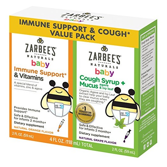 史低价!【美亚直邮】Zarbee's Naturals 婴幼儿提高*力维生素+*糖浆套装 59ml*2瓶