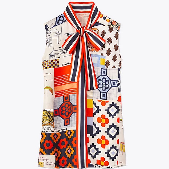 • Tory Burch Sienna 印花无袖蝴蝶结衬衫