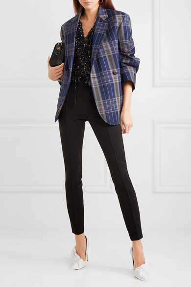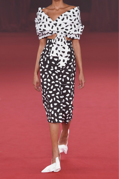 Off-White 2018 春夏系列的灵感源于戴安娜王妃,因此与曾为她打造了无数款美鞋的 Jimmy Choo 携手合作,虽令众人颇感意外却又在情理之中。这款 “Mary” 高跟鞋即是以这位威尔士王妃大爱的 1980 年代风格为创作之源(为此她还被昵称为 “Dynasty Di”)。它以柔软光亮的白色罗缎于意大利精心制成,缀有夸张的蝴蝶结饰。不妨借鉴秀台造型,以黑白单品相搭。