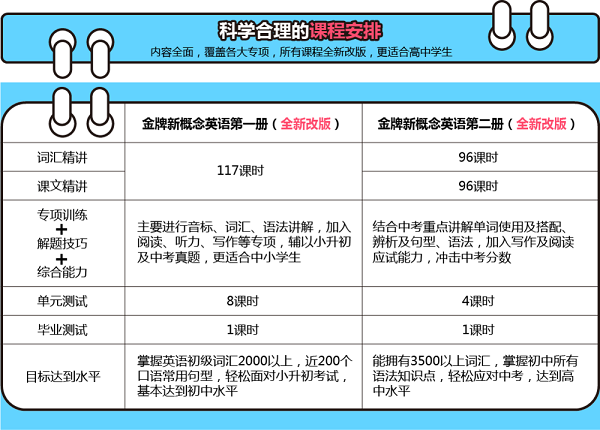 沪江网校现针对小学高年级或初中学生,推出中小学金牌新概念英语1、2册连读【学霸班】网课,本课程做了全新升级,为了给大家带来更合适的学习体验,也为了给大家带来更有针对性的学习效果,沪江网校将原有的新概念课程做了全新的改版。