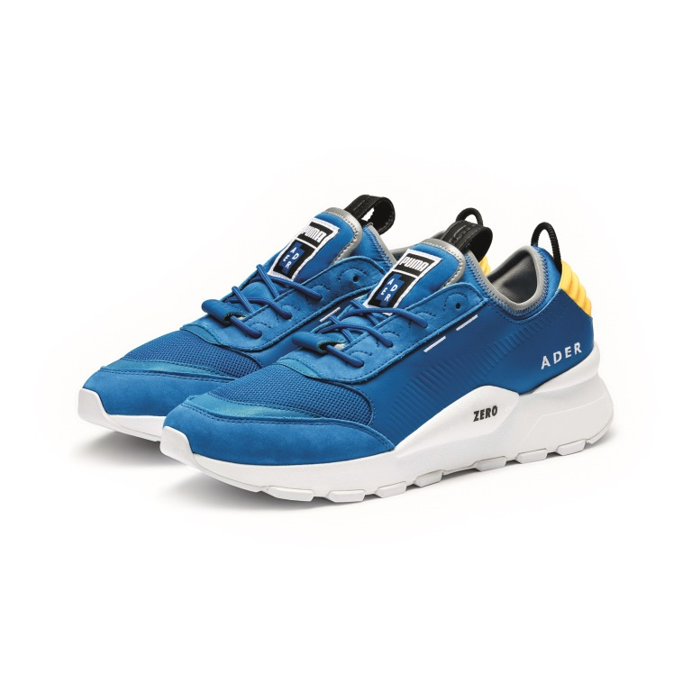 2018 秋冬PUMA SELECT x ADER ERROR 联名系列以复刻鞋款PUMA RS-0、Platform、与50 周年经典Suede 鞋款为原型翻玩设计,PUMA RS-0 ADER ERROR 采用PUMA Running System 缓震科技,以厚实大底与混合材质鞋面组成,袜套式一体成型鞋口设计与鞋后跟增加拉绳巧思,兼具前卫外型与穿脱便利性;PUMA PLATFORM TRACE ADER ERROR 加高式厚底深受名人喜爱,湛蓝鞋面搭上反光PUMA LOGO 营造视觉亮点; PUMA SUEDE ADER ERROR 保有米色经典麂皮鞋面,湛蓝色彩于鞋舌巧妙勾边,在致敬经典的同时添入ADER ERROR 前卫外衣。