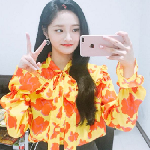 【周洁琼同款】LangnLu 拼色褶边装饰喇叭袖雪纺衬衫