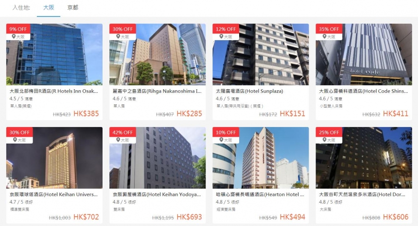 携程国际 现有 精选 大阪、京都 酒店低至5.8折+*高立减HK$200或NT$1000,预订满HK$3,300可减HK$200,预订满 HK$2,600可减HK$130,预订满HK$2,000可减HK$80,需要使用优惠码:TOJPHKD ,预订满NT$16,000可减NT$1,000,预订满NT$12,000可减NT$600,预订满NT$10,000可减NT$400,需要使用优惠码:TOJPTWD ,有效期至北京时间 2018年10月31日23点59分,立即购买>>