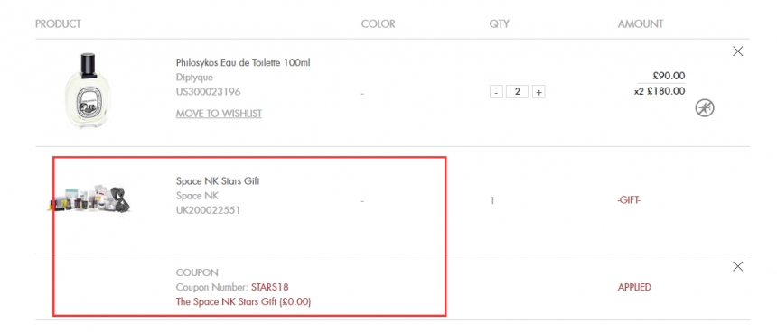 Space NK UK 现有 DIPTYQUE、香缇卡、hourglass等热卖彩妆护肤 满£175送价值£450豪华礼包,需要使用优惠码:STARS18 ,优惠随时可能失效,满£100即可直邮中国。立即购买>>