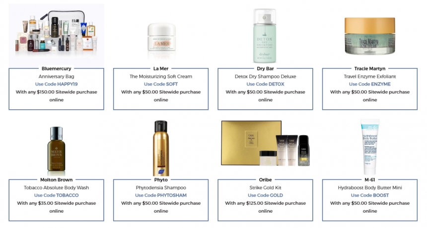 Bluemercury周年庆活动全程满$150送25件套大礼包,需要用码HAPPY19;