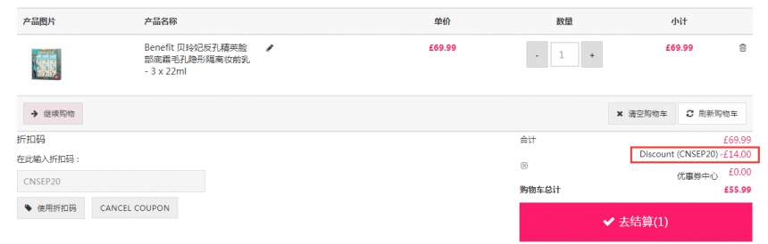 Unineed Limited CN 现有 Benefit 贝玲妃反孔精英妆前乳 3 x 22ml,原价£82,现特价£55.99(约492元),需要使用优惠码:CNSEP20 ,优惠随时可能失效,满£50即可免费直邮中国。立即购买>>