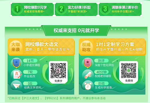 【开学季特惠】沪江网校:学霸攻略成绩飞跃 中小幼专场