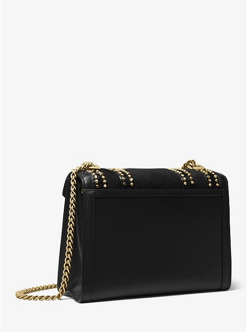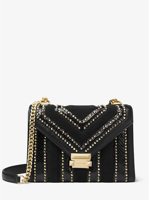 【吴谨言同款不同色】Michael Kors Whitney 黑色天鹅绒闪钻拼接链条肩包