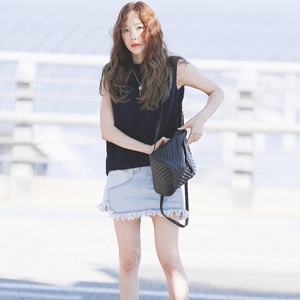 【金泰妍同款】EYEYE 不对称拼色毛边迷你牛仔半身裙