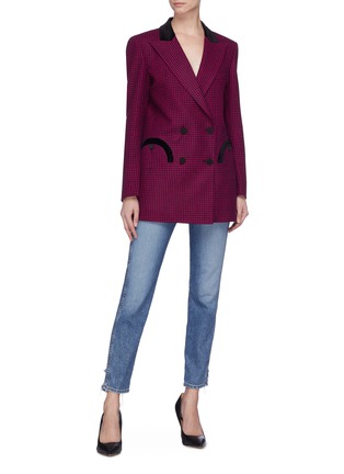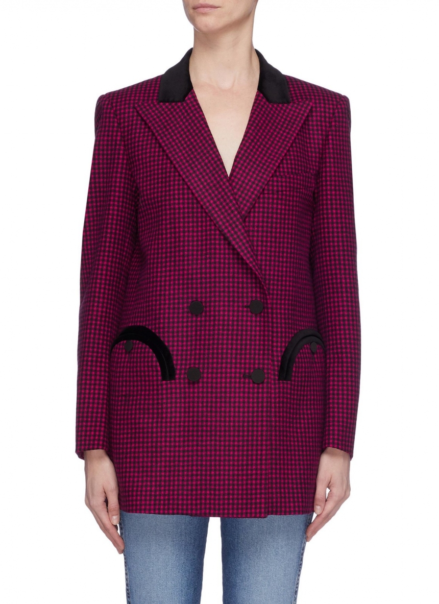 超流行的格子西装不来一件么!BLAZÉ MILANO FAIR AND SQUARE 天鹅绒拼接双排扣羊毛西服外套
