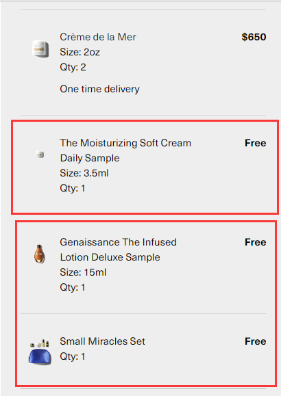 La Mer 现有 贵妇奢华护肤 满$300送豪华4件小样,包含:包括眼部精华(3ml),价值$43,浓缩修护精华(5ml),价值$63,*活肤精华油(5ml),价值$43,神奇面霜(7ml),价值$40+满$450送鎏金乳液15ml+结账自选好礼,需要使用55专享优惠码:55LAMER ,优惠随时可能失效,美国境内免邮。立即购买>>