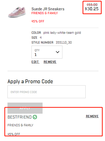 Puma US 现有 Puma 彪马 Suede Classic 经典板鞋 大童款 热卖,原价$55,现特价$30.25(约208元),需要使用优惠码:BESTFRIEND ,有效期至北京时间 2018年09月18日15点,使用该折扣码可享美国境内限时无门槛免邮。立即购买>>