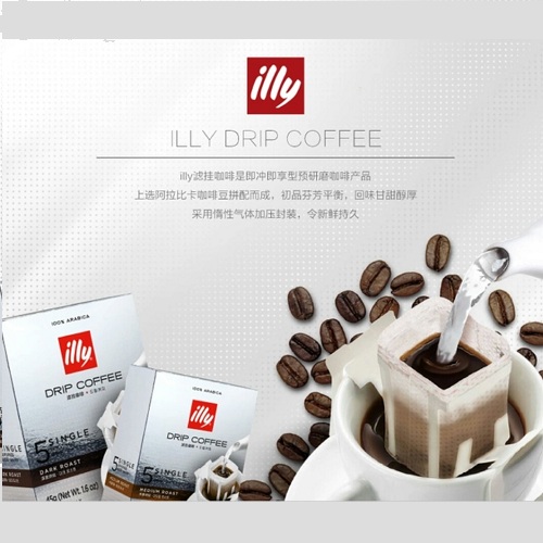 illy 意大利进口 中深度烘焙挂耳咖啡 现磨滤挂黑咖啡粉 5片