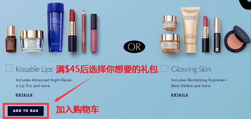 满$45送的7件套礼包无需优惠码,可以叠加新人8.5折等各种优惠码,礼包需要进入活动页面选择添加>>