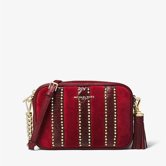 【吴谨言类似款】Michael Kors Ginny 复古红色拼接铆钉装饰中号肩包
