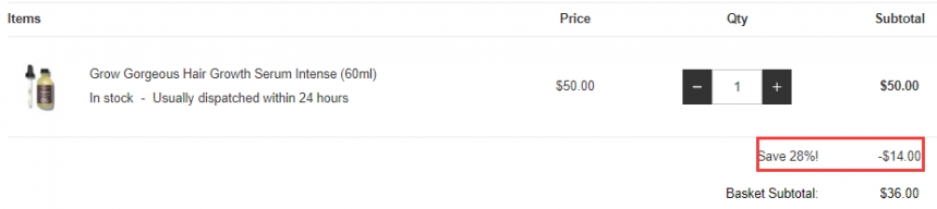 Lookfantastic 现有 Grow Gorgeous **精华加强版 60ml,原价£45,右上角调到美元结算为$50,定价是英国的8.8折,现可叠加额外7.2折,折后每瓶特价$36(约247元),需要使用优惠码:FLASH28 ,相当于英淘购买的6折力度,优惠随时可能失效,满£40免费直邮中国。立即购买>>