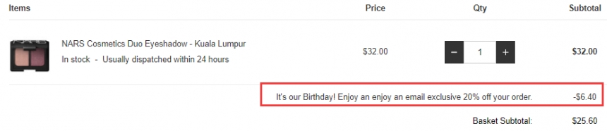 Lookfantastic 现有 NARS 双色眼影盘 吉隆坡/圣保罗 补货到,现美元汇率更划算,点击网页右上更换货币为USD美元(国家还是选择UK),原价$32,现特价$25.6(约176元),需要使用优惠码:CELEBRATE20 ,优惠随时可能失效,品牌限制,暂不支持直邮,英国境内无门槛免邮,立即购买>>