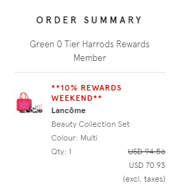需要免费注册 Harrods Reward 会员才能看到折扣价格,价格显示在购物车内。