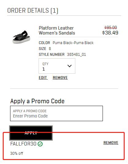 Puma US 现有 Puma 彪马 Platform Leather 女子厚底凉鞋 热卖,原价$95,现特价$38.49(约264元),需要使用优惠码:FALLFOR30 ,有效期至北京时间 2018年10月09日15点,使用该优惠码可享美国境内限时免费2日达。立即购买>>