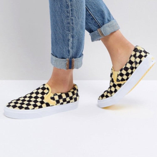 Vans Fluffy 黄色棋盘格一脚蹬