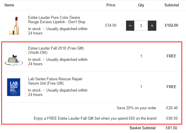 Lookfantastic 现有 Estee Lauder 雅诗兰黛 Pure Color Desire 新品唇膏,原价£34,现特价£27.2(约248元),需要使用优惠码:LF20 ,购买*雅诗兰黛产品满£60就送价值£90的智妍护肤礼包(仅限产品下方标注红字赠礼的产品参加),优惠随时可能失效,品牌限制,暂不支持直邮,需要转运。立即购买>>