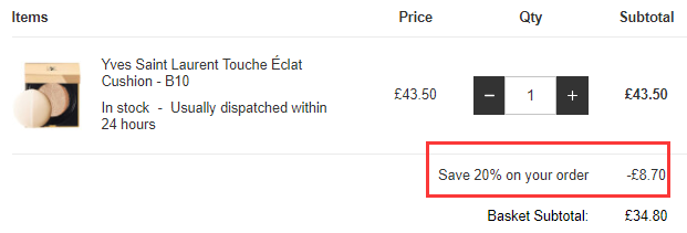 Lookfantastic 现有 YSL 圣罗兰 超模聚焦系列蕾丝光感气垫粉饼,原价£43.5,现特价£34.8(约317元),需要使用优惠码:LF20 ,优惠随时可能失效,品牌限制,暂不支持直邮,需要转运。立即购买>>