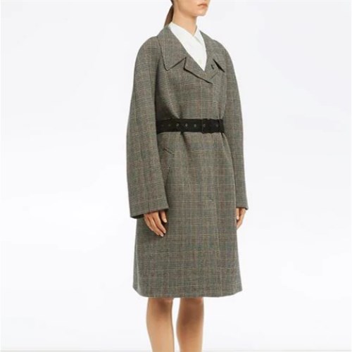 Prada 气场款系腰带复古格纹中长大衣