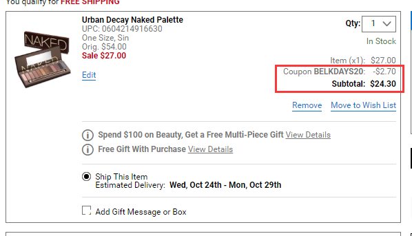 BELK 现有 5折+额外8.5折!Urban Decay 多色眼影盘一代,原价$54,现特价$24.3(约169元),优惠随时可能失效,满$49免美国境内运费,立即购买>>