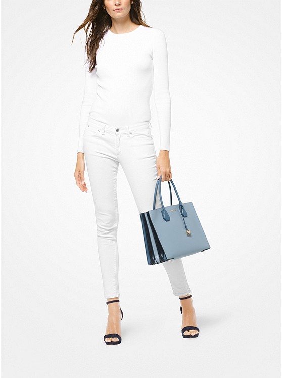 热销款补货!Michael Kors Mercer 大号蓝拼风琴包