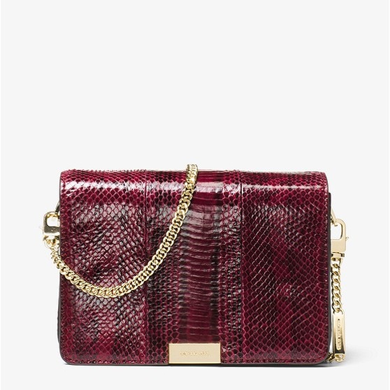 Michael Kors Jade 酒红色蛇纹印花链条肩包