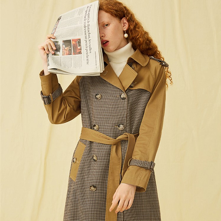 Ile 逸侣 原创设计师 复古格纹拼接双排扣风衣