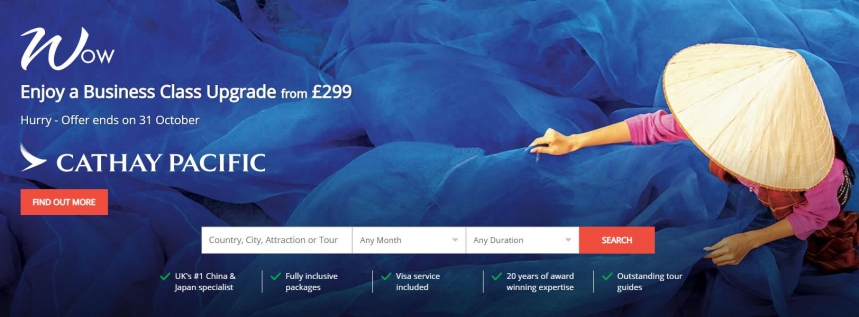 Wendy Wu Tours 是世界知名的旅行社,也是澳大利亚、英格兰以及新西兰*大的旅行社之一,主要组织以英文为母语的国家的游客来华旅游,在世界各地均是行业眼中公认的中国组团社*品牌。现在有国泰航空升级商务舱好价活动,低至£299!有需求的小伙伴不要错过~