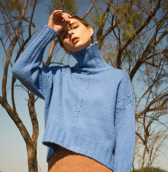 OURCOMOS 宽松落肩孔点装饰女士高领毛衣双色