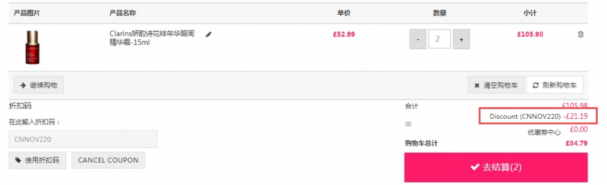 Unineed Limited CN 现有 Clarins 娇韵诗花样年华眼周精华霜 15ml,原价£56,现特价£42.39(约376元),2个以上享额外8折!需要使用优惠码:CNNOV220 ,优惠随时可能失效,满£50即可免费直邮中国。立即购买>>