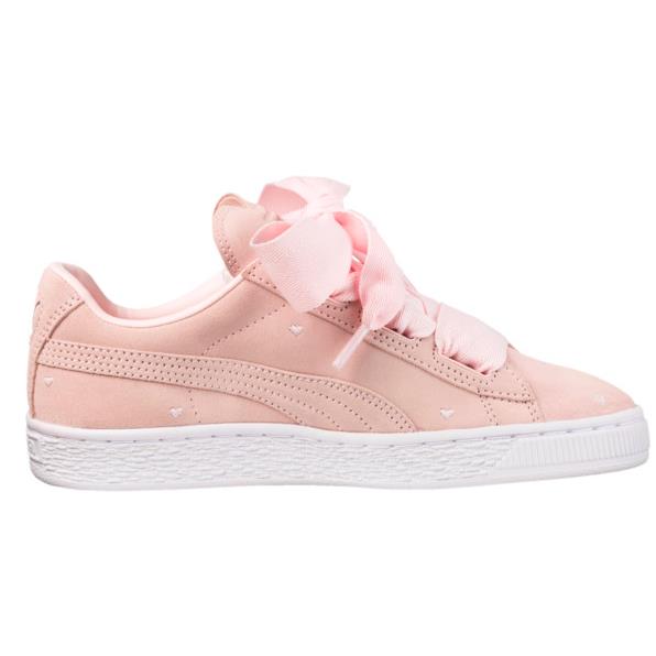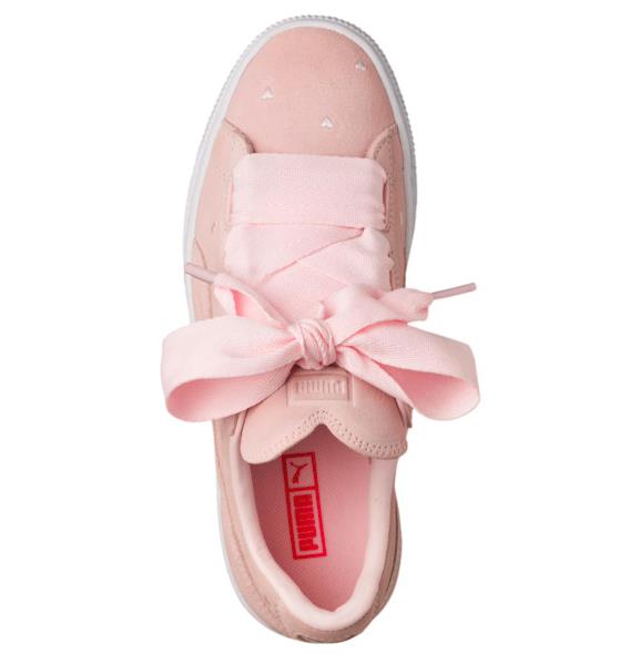 【黄金码全!爱心鞋舌和小爱心刺绣的鞋面~】这双 Basket Heart 沿袭了经典的 Suede 板鞋设计,融入了近年流行的蝴蝶结鞋带设计,灰常可爱了!*值得一提的就是 Valentine 版的爱心鞋舌和鞋面啦!独特的小心机,现特价超划算!女生黄金码暂全,这个粉色真的嫩的不行,喜欢的要早点下手咯