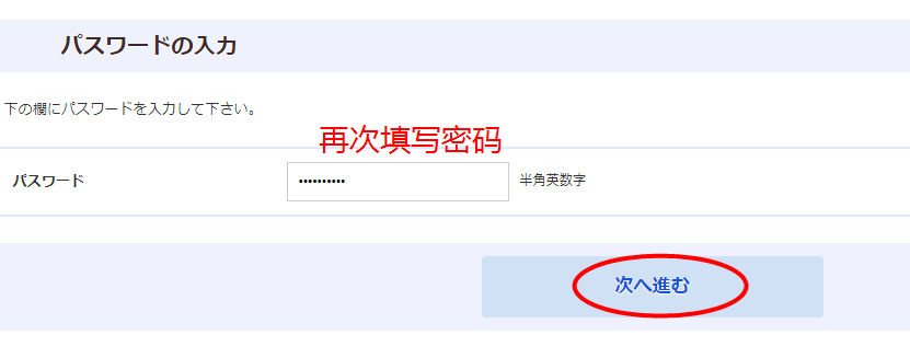 再次填写密码,然后点击“进入下个页面”