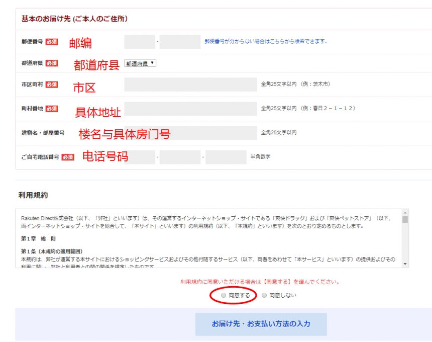 然后就进入到填写地址,国内的小伙伴请填写转运提供的地址,*后别忘了选择同意利用规则哦~