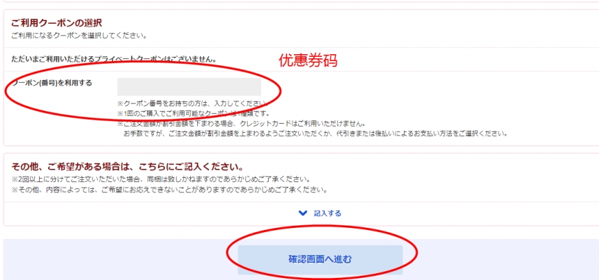 如果有优惠券码的小伙伴这时候一定要记得填写哦~填好后,点击“进入确认画面”
