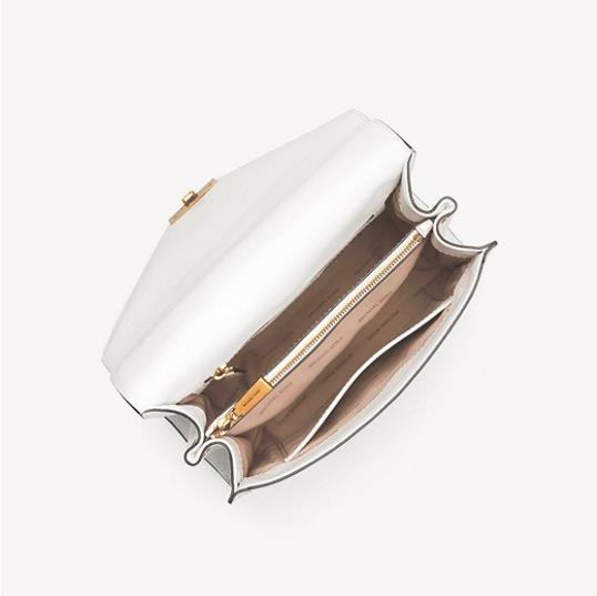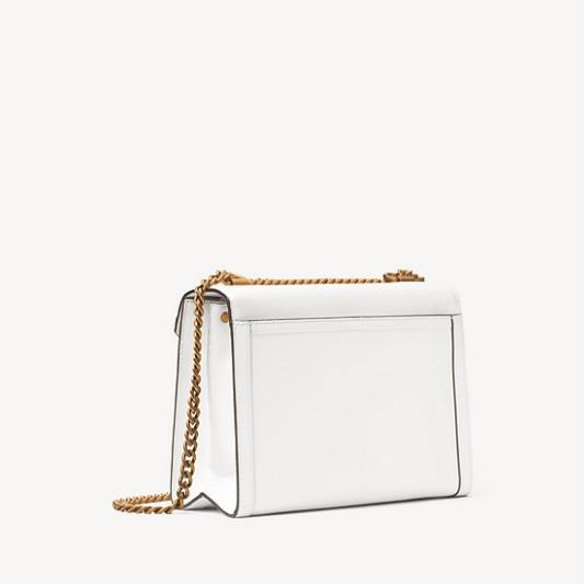 MK 折扣单品额外7.5折的车大家都上了吗?这款链条信封包也是蛮值得入手的噢!简洁俐落的线条轮廓,透过菱角形状翻盖设计让包款正面巧妙成为M字型,将对设计师 Michael 别具意义的字母体现在包款上,光滑触感的硬挺牛皮革材质和金属链带锁扣加以点缀,搭配百搭之王的白色*,更添许多雅致风采。