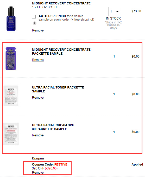Kiehl's 科颜氏 美国官网 现有 全场满$65立减$20活动,夜间修护精华液 50ml,原价$73,现特价$53(约368元),需要使用优惠码:FESTIVE ,有效期至北京时间 2018年11月27日13点,购物车中可以自选3件小样,满$50免美国境内运费。立即购买>>
