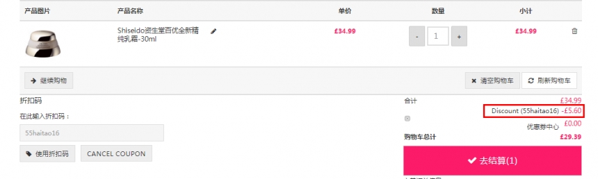Unineed Limited CN 现有 Shiseido 资生堂百优全新精纯乳霜 30ml,原价£58,现特价£29.39(约267元),需要使用55专享优惠码:55haitao16 ,优惠随时可能失效,满£50即可免费直邮中国。立即购买>>