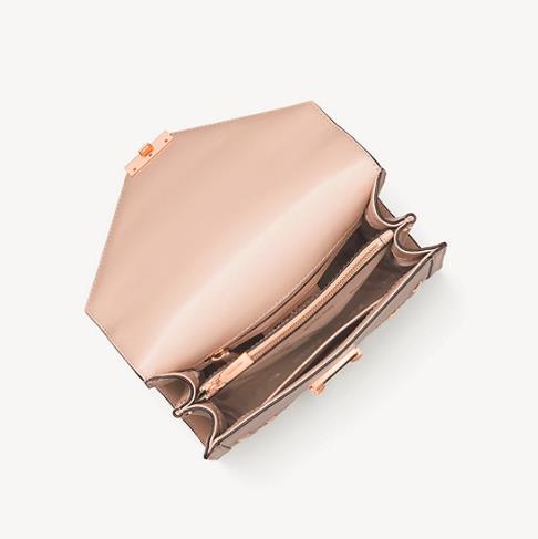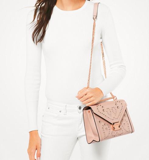 MK 折扣单品额外7.5折的车大家都上了吗?这款链条信封包也是蛮值得入手的噢!简洁俐落的线条轮廓,透过菱角形状翻盖设计让包款正面巧妙成为M字型,将对设计师 Michael 别具意义的字母体现在包款上,光滑触感的硬挺牛皮革材质和金属链带锁扣加以点缀,搭配柔粉色*,更添许多雅致风采。说是杨幂同款,但上面的金属饰物略有不一样哦,但皮质和颜色可参考杨幂上身实图,灰常温柔!